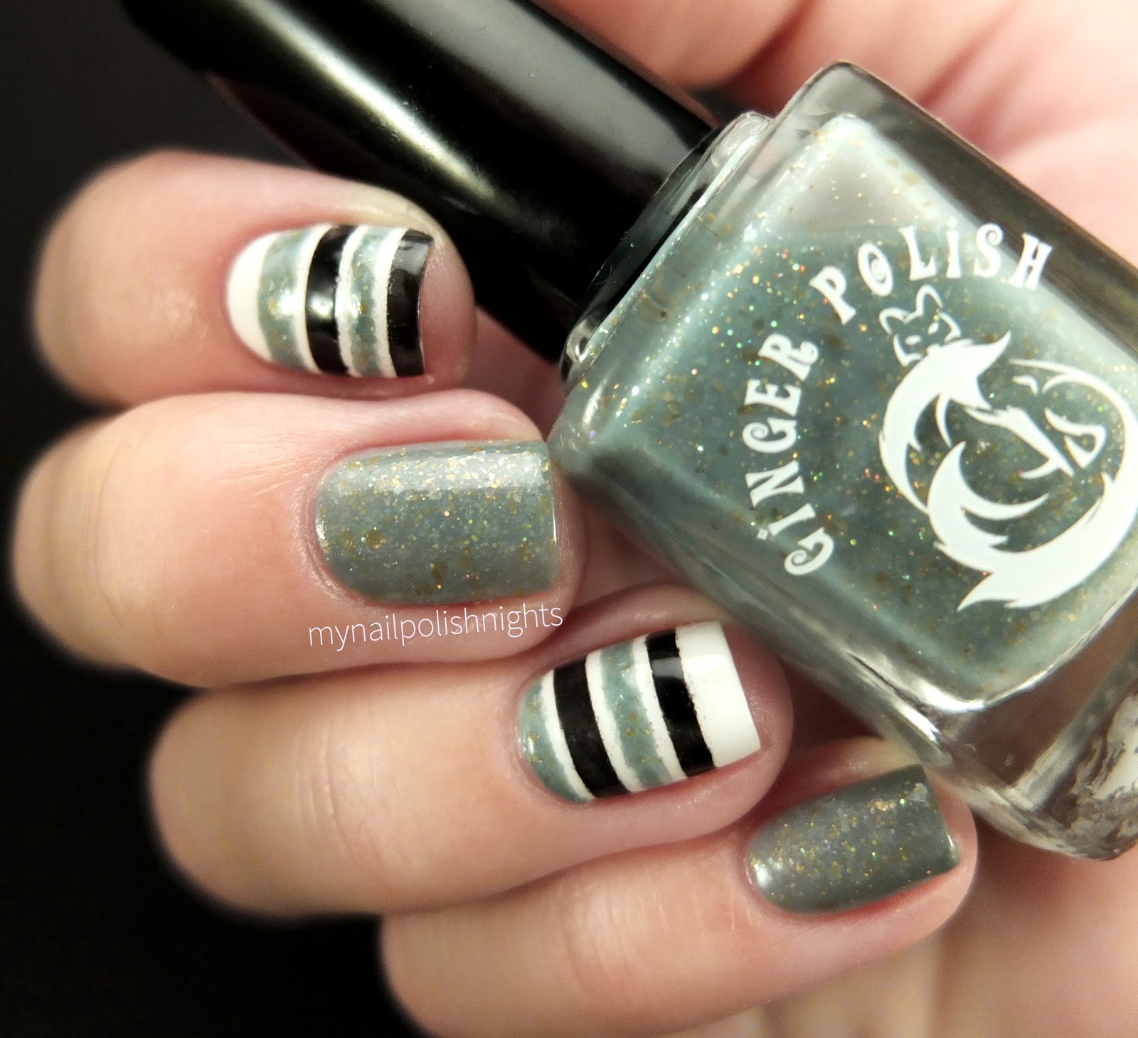 [RU] Когда я впервые увидела свотчи чудесного лака Singing in the rain от российского инди-бренда Ginger polish, я влюбилась моментально и вскоре его купила. Он месяц ждал, чтобы я им воспользовалась, но я застряла и не могла придумать подходящий к нему нейл-арт. И вдруг он в один момент родился у меня в голове: типа монохромные полосочки.
